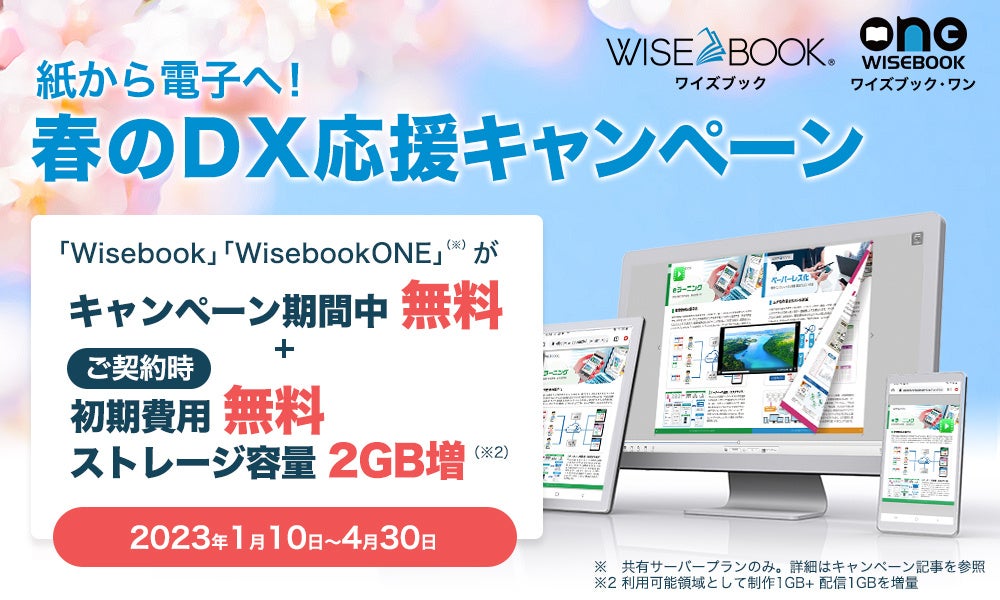 【紙から電子へ!春のDX応援キャンペーン】TVCM放映中のデジタルブッククラウドサービス『Wisebook』や、会社全体のDXにおすすめの『WisebookONE』を期間中無料でお使い頂けます!