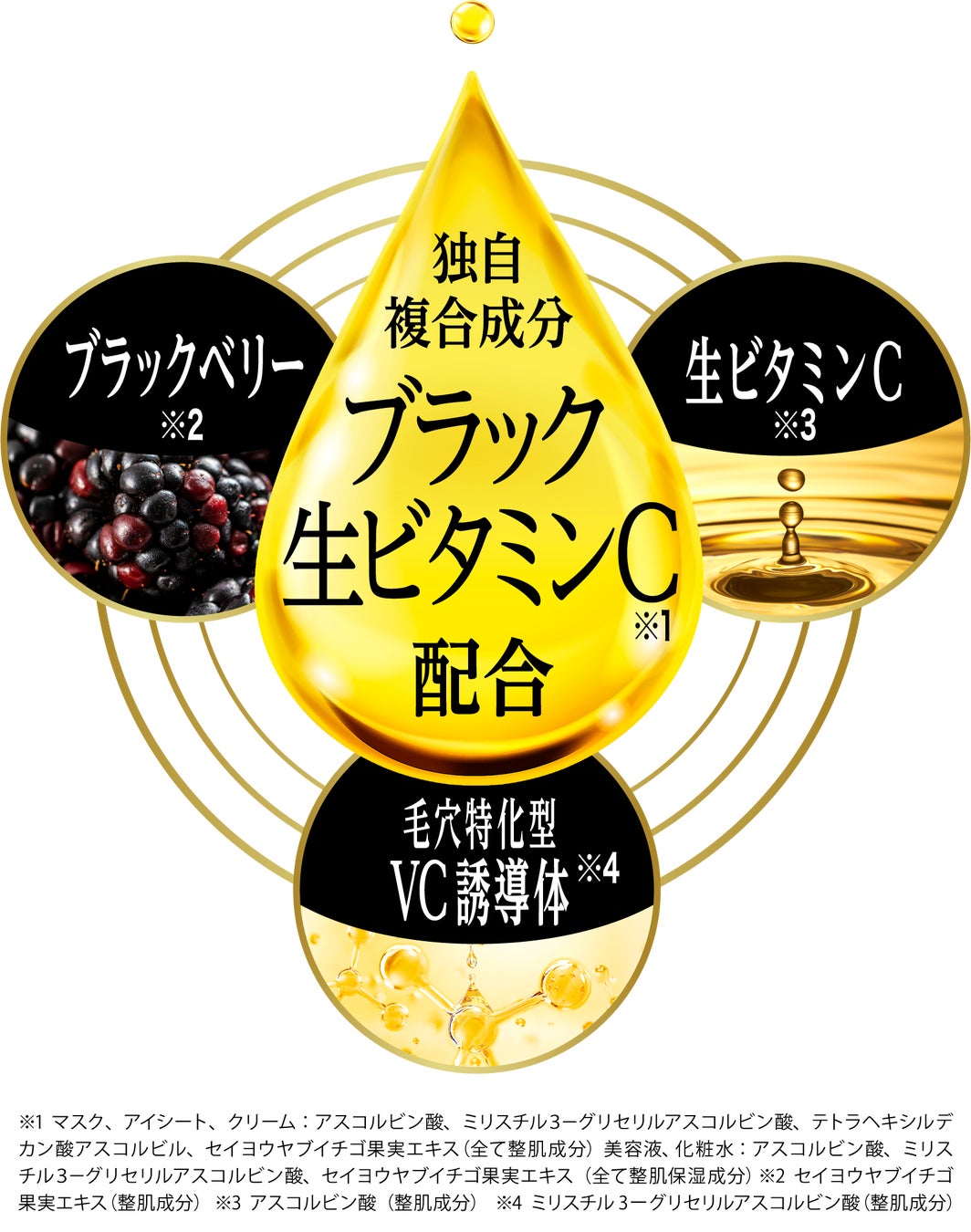 独自複合成分『ブラック生ビタミンC*⁴』×『超高圧微粒子テクノロジー』で