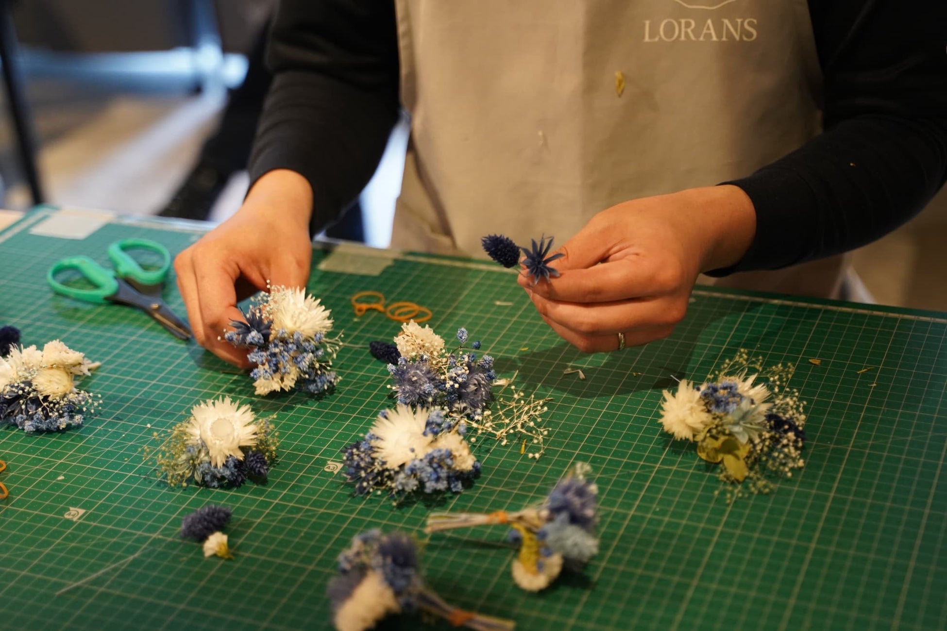 企業の販促活動に使われる花のノベルティ制作(ミニブーケ、パーツづくり)を行っています。