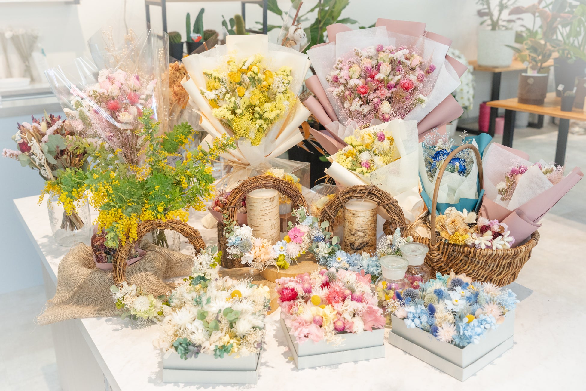 ファクトリーではドライフラワーギフトを手に取ってご覧いただけます。