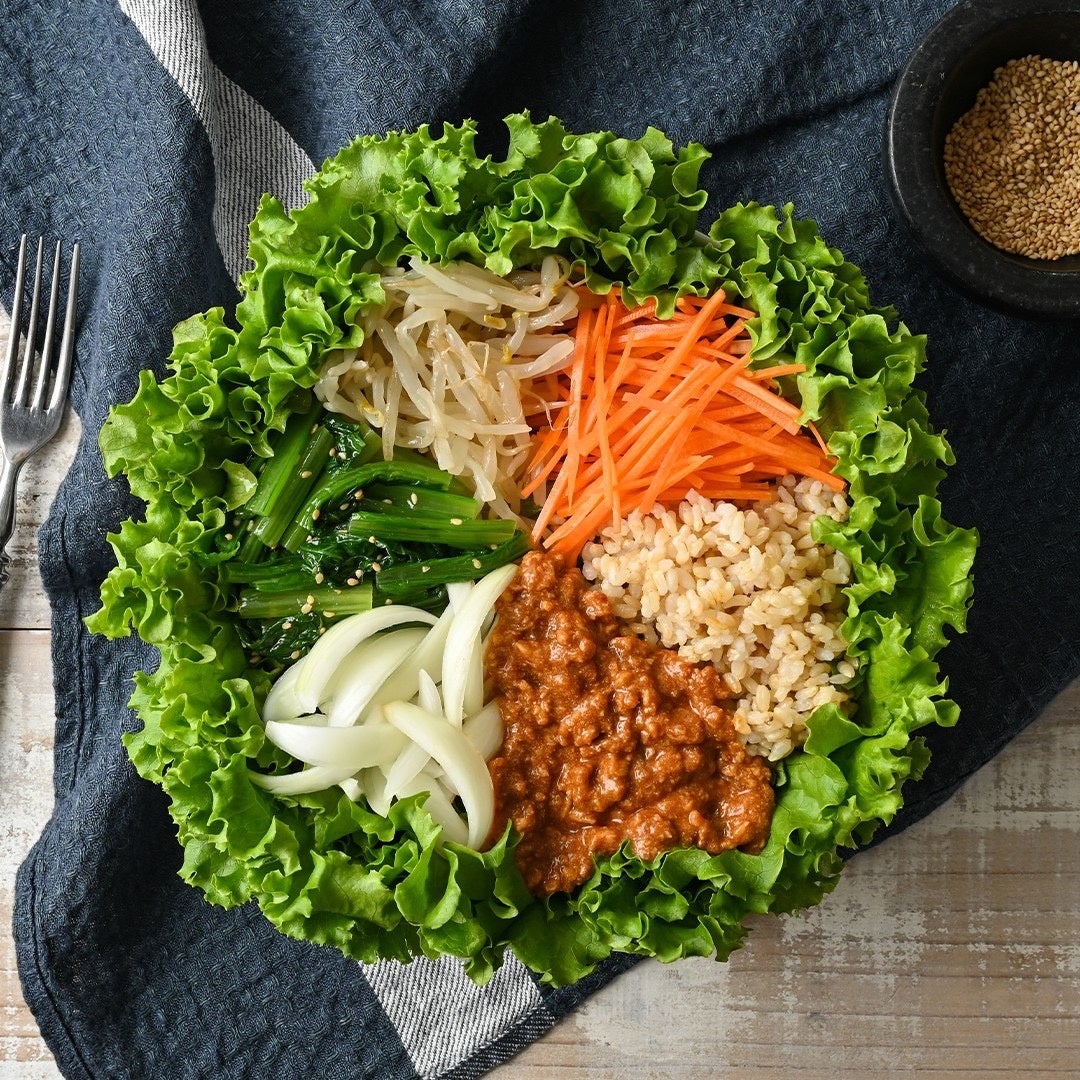 辛みがなく、甘みの強い玉ねぎ「スマイルボール」は、毎年人気の“旬”の野菜です。コチュジャンのピリ辛な風味が効いた「韓国風肉そぼろ」との相性も抜群です。