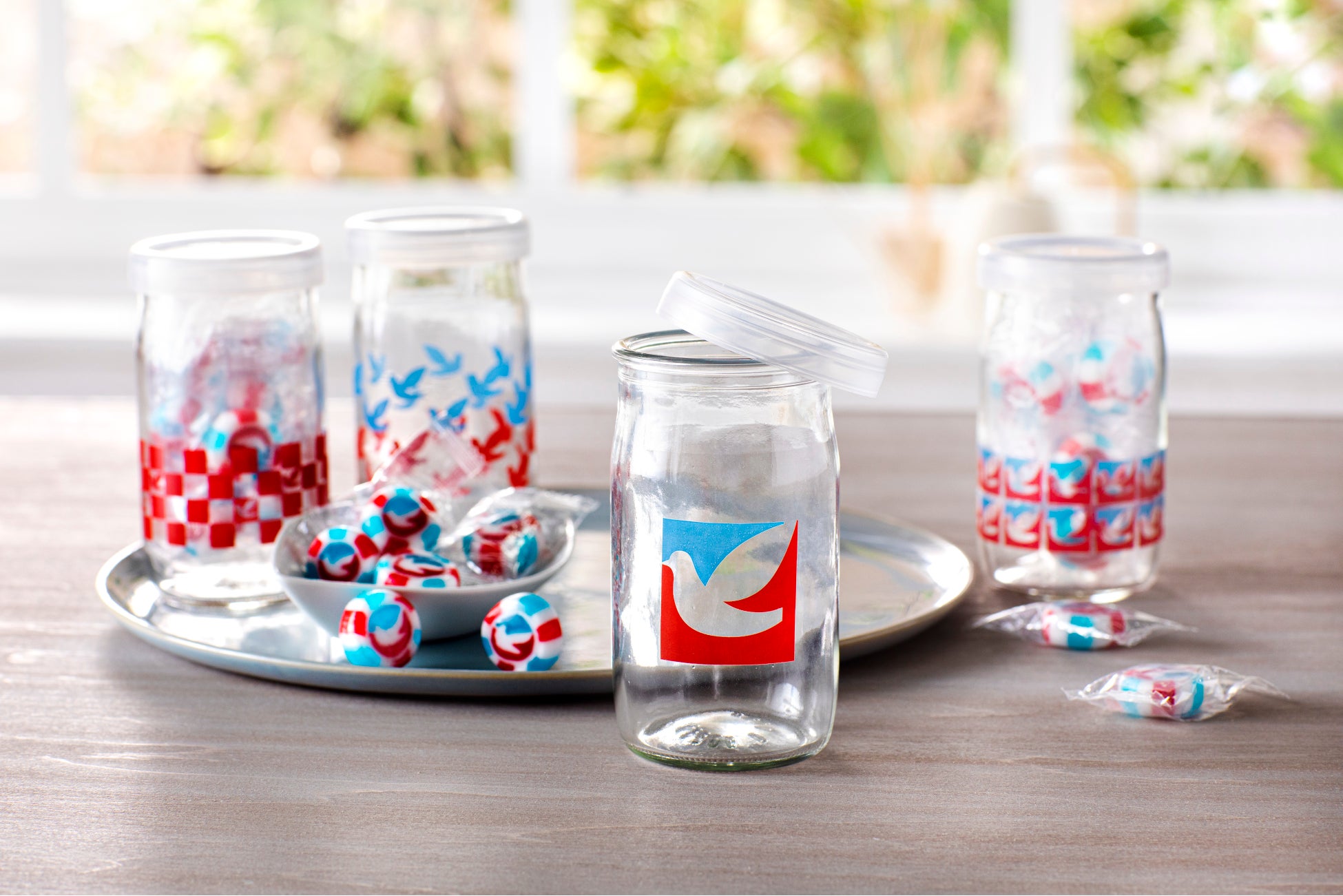 全4デザイン展開のハトモチーフのワンカップです。飴のおまけが付いています。