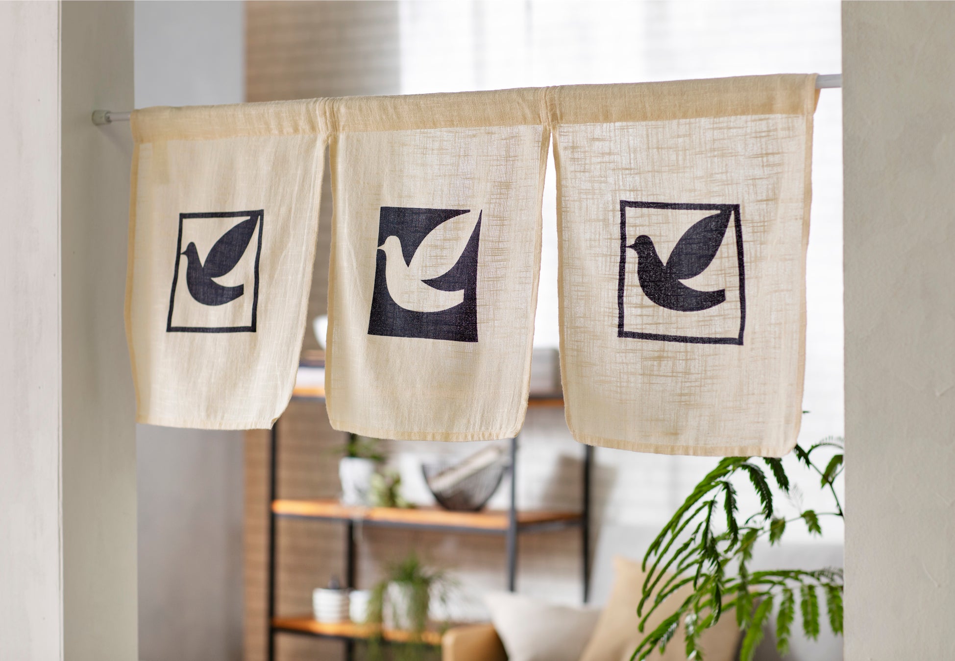 清涼感のあるハト柄ののれんです。