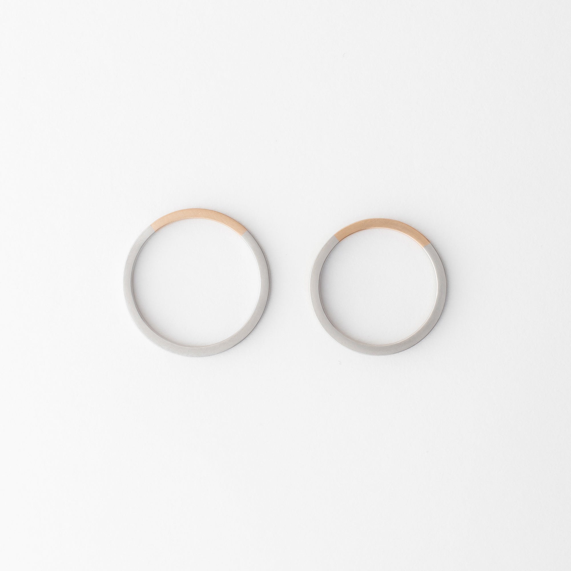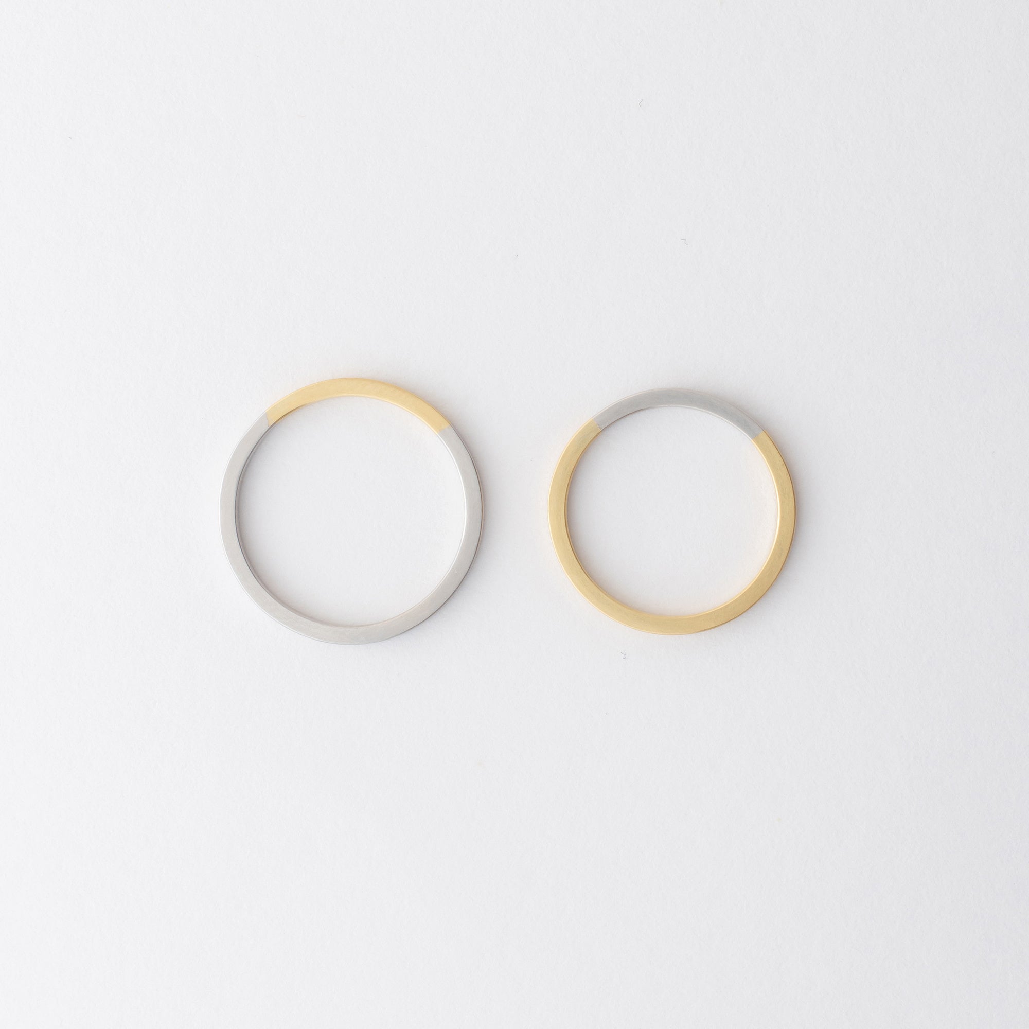 一般的に、結婚指輪の太さは女性なら2mm~3mm、男性なら3mm~3.5mmくらいと言われていますが、hibiで取り扱っている「極細リング」は幅1.4mmといわゆる”結婚指輪”らしくないカジュアルなリングです。オープン当初から人気が高く、飾り気を一切なくしたミニマルなデザインが「シンプルで合わせやすい」「オシャレ!」という声を多くいただいています。そのような背景から、結婚指輪として細身のリングが男女問わずニーズがあることを感じ、今回その極細リングの新シリーズとして、幅1.4mmのシンプルなフォルムはそのままに、1つのリングに2種類の素材を使用し、シンプルさの中に個性の光る『2色』の極細リングを発売することを決定しました。