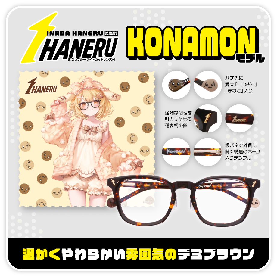 本商品は同日配信された因幡はねるさんの新衣装お披露目ライブにて初披露された公式衣装眼鏡です。