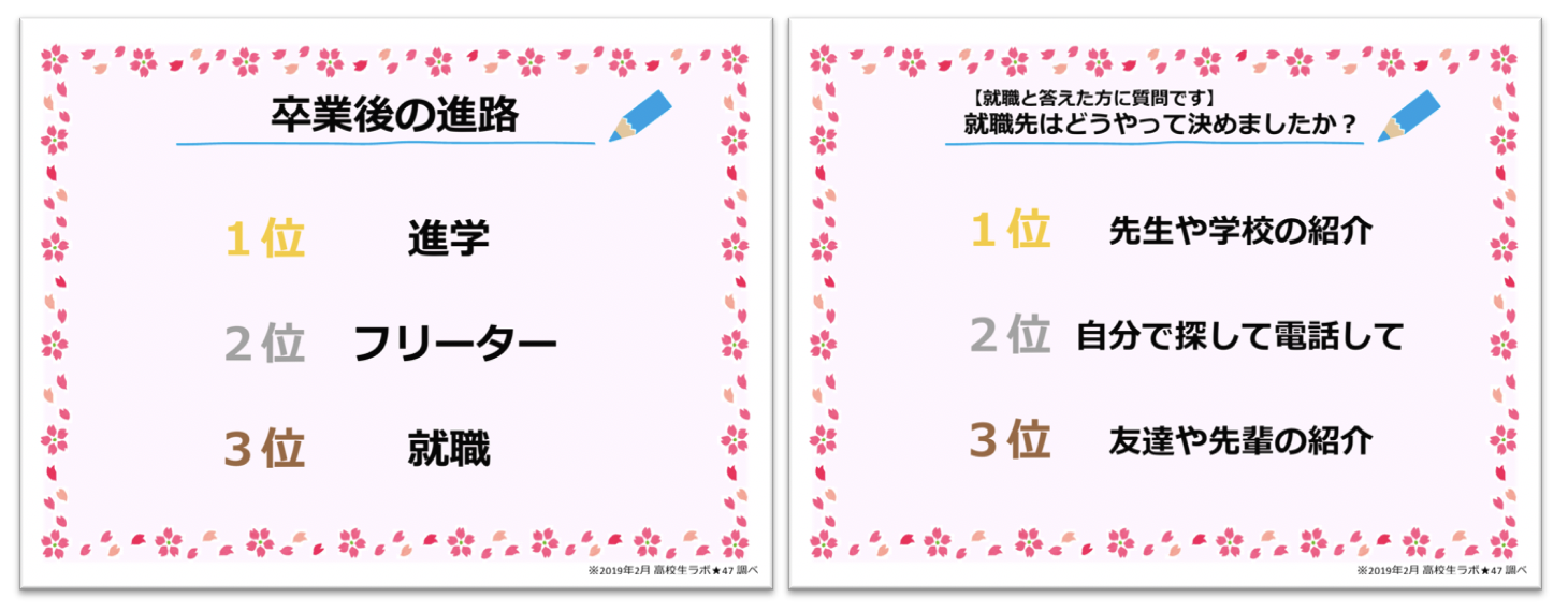 今年度高校卒業の3年生に聞いたこちらのアンケート。