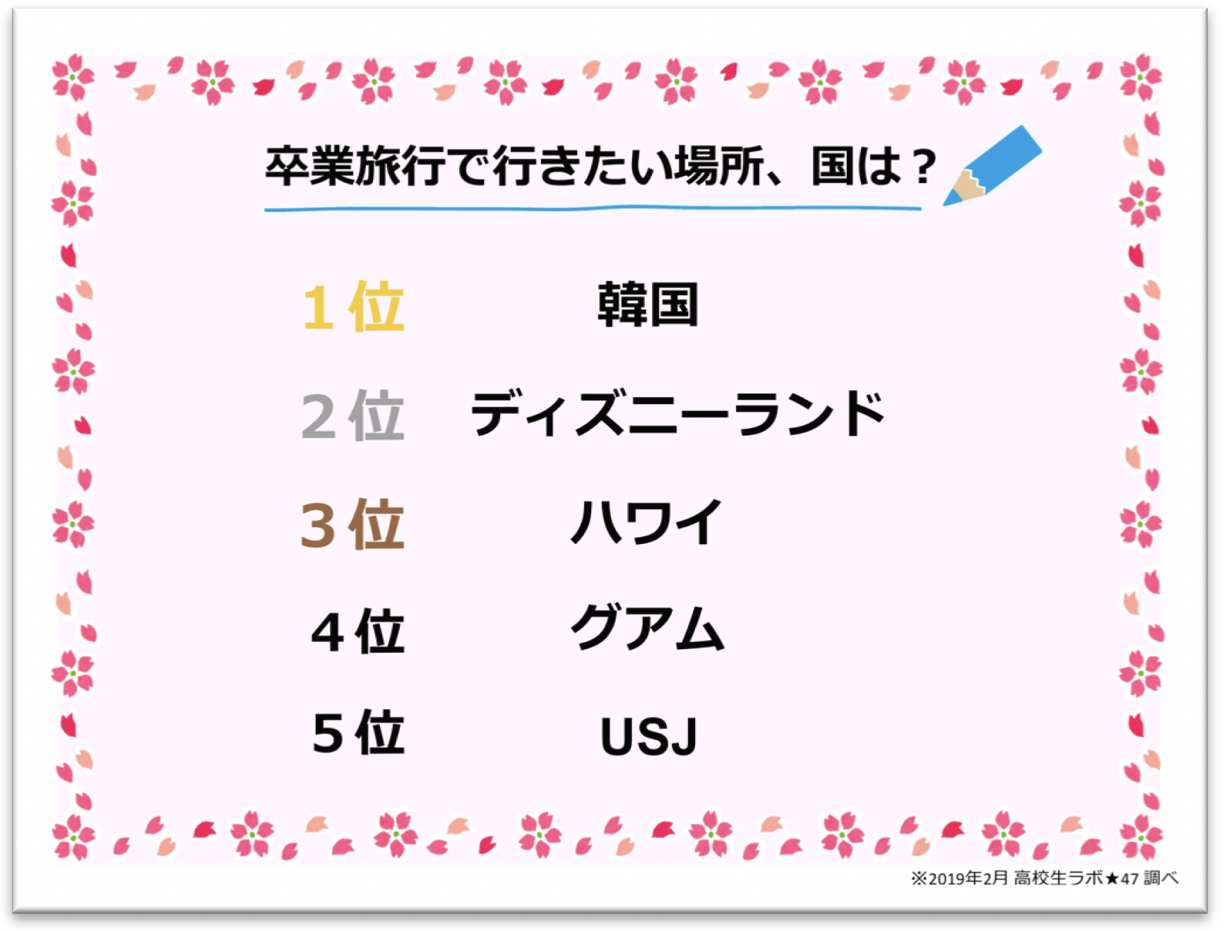 卒業旅行行きたい場所は韓国が1位!王道ディズニーランドを抑えた!
