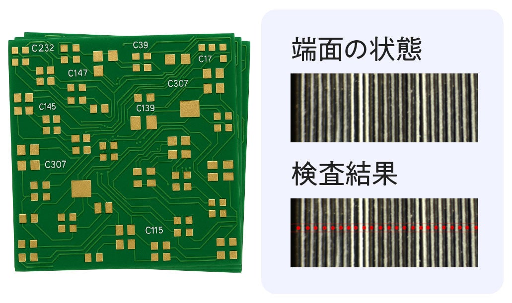 従来機では計数が困難だった、保護用合紙付きで不均一な断裁面の基板も正確に計数します。