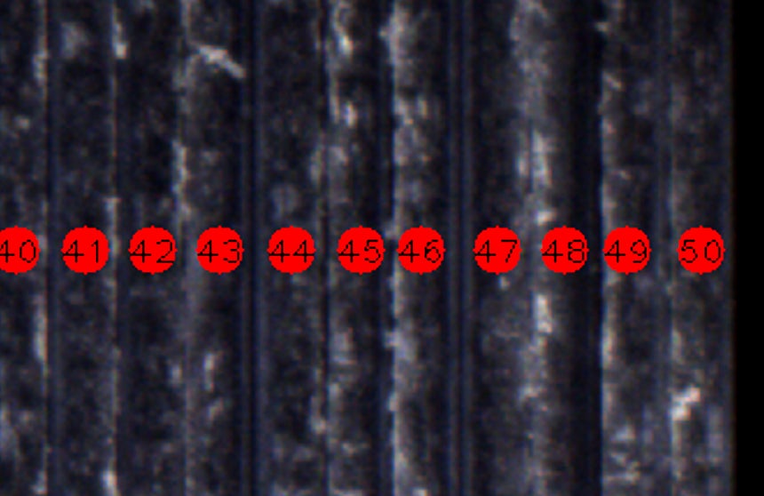 そのため、1つの端面の中に複数の輝度変化があるものや、輝度変化が一定でないものもAIが正確に認識し、1枚1枚を正確にカウントします。