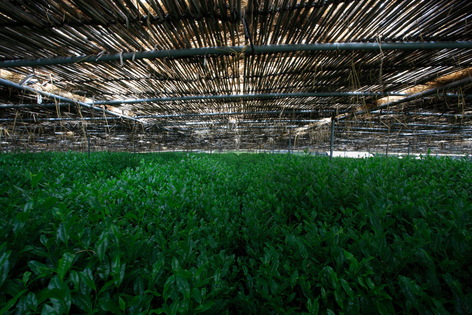 新芽の季節が近づくと、茶畑全体に覆いをして日光を遮りま伸び盛りの茶葉の生命力が高まり、旨味とコクがうちへうちへと凝縮されます。手塩にかけて育てた茶葉の希少な一番茶を使っています。