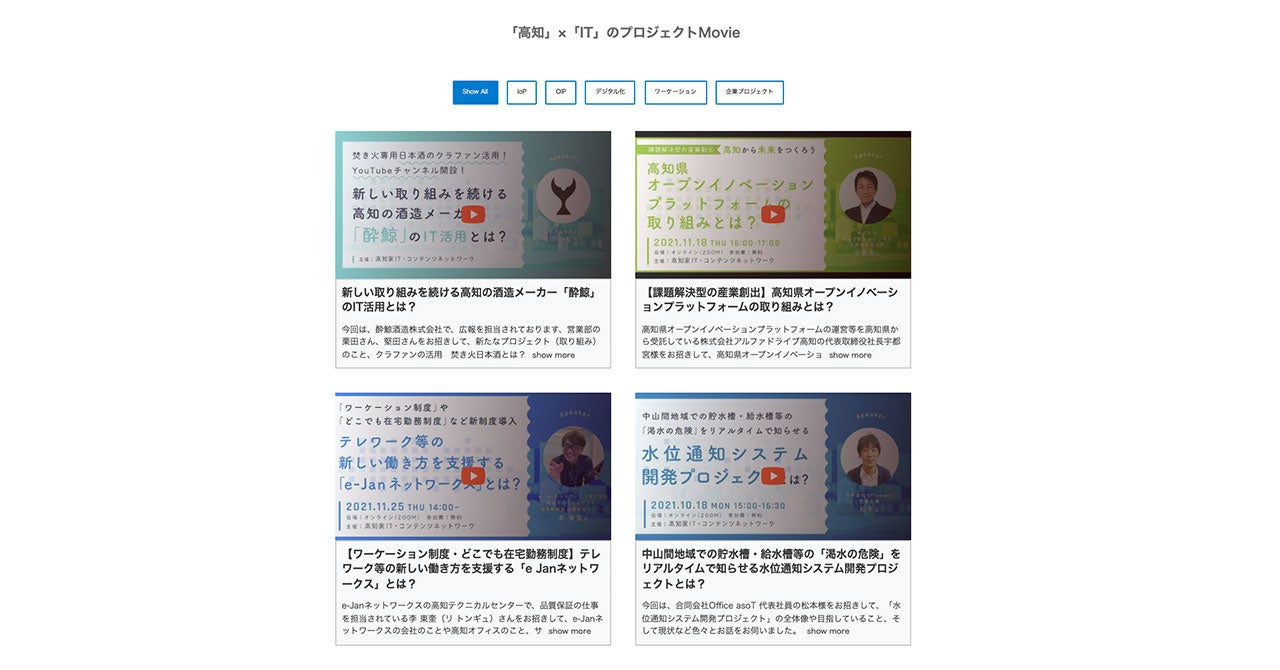 昨年より、ITを活用した高知県のさまざまな取り組みを紹介する動画コンテンツを「高知家IT・コンテンツネットワーク」サイト内にて無料公開中(https://kicnetwork.kochi.jp/topics/movie/)です。