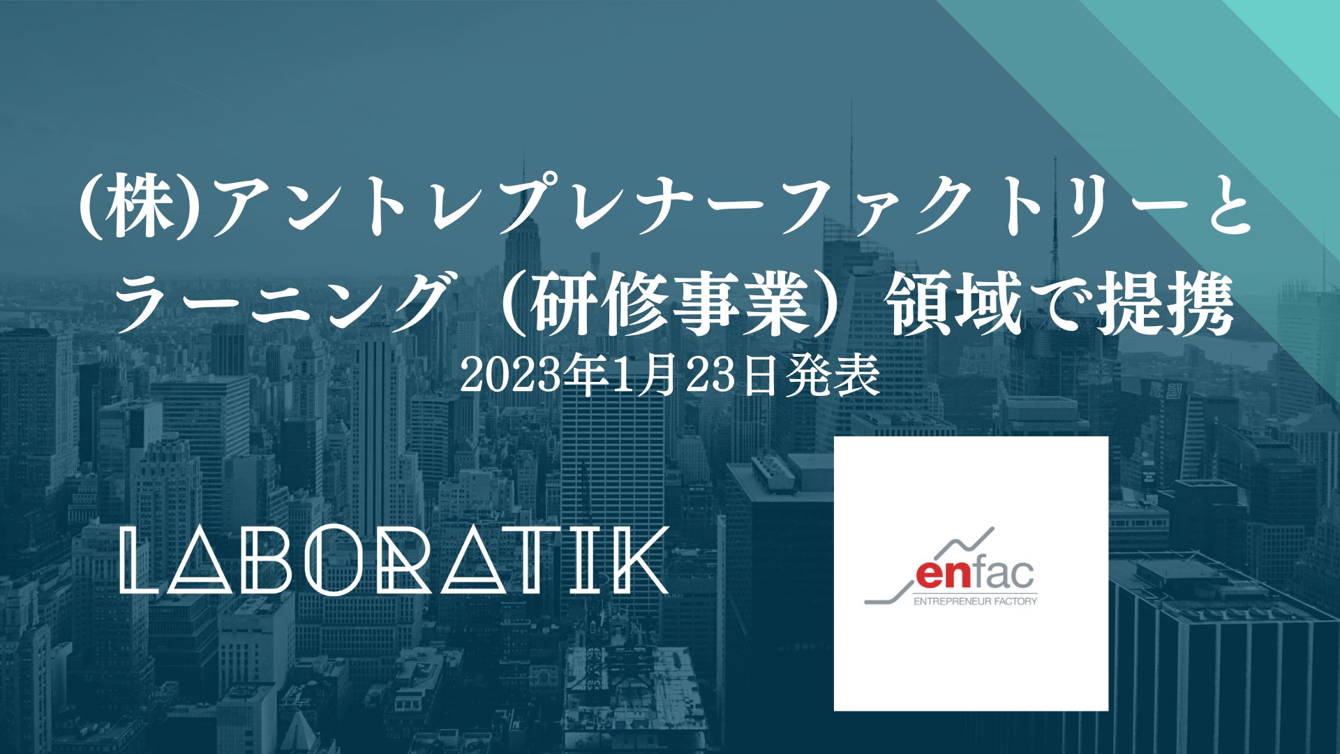 Slackのコミュニケーションデータを活用したマネジメント向け支援サービスを提供するラボラティック株式会社(本社:東京都中央区、代表取締役:野口麗奈)が、2023年2月1日(水)より、企業内教育・起業家教育の動画研修事業を行う株式会社アントレプレナーファクトリーとの業務提携の基本合意を締結するに至りましたので、お知らせします。