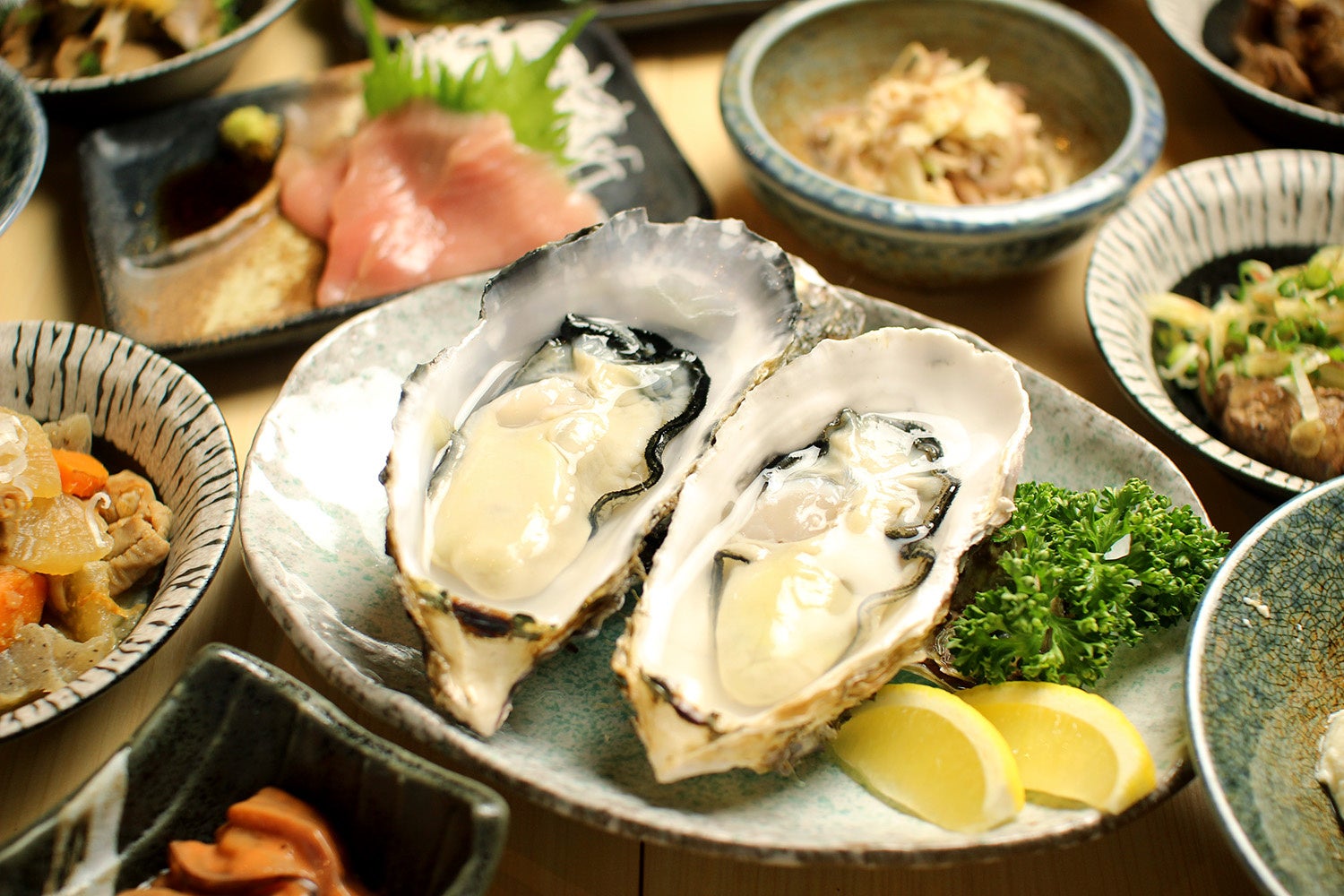 料理は牡蠣をメインに日本酒に合うつまみを用意