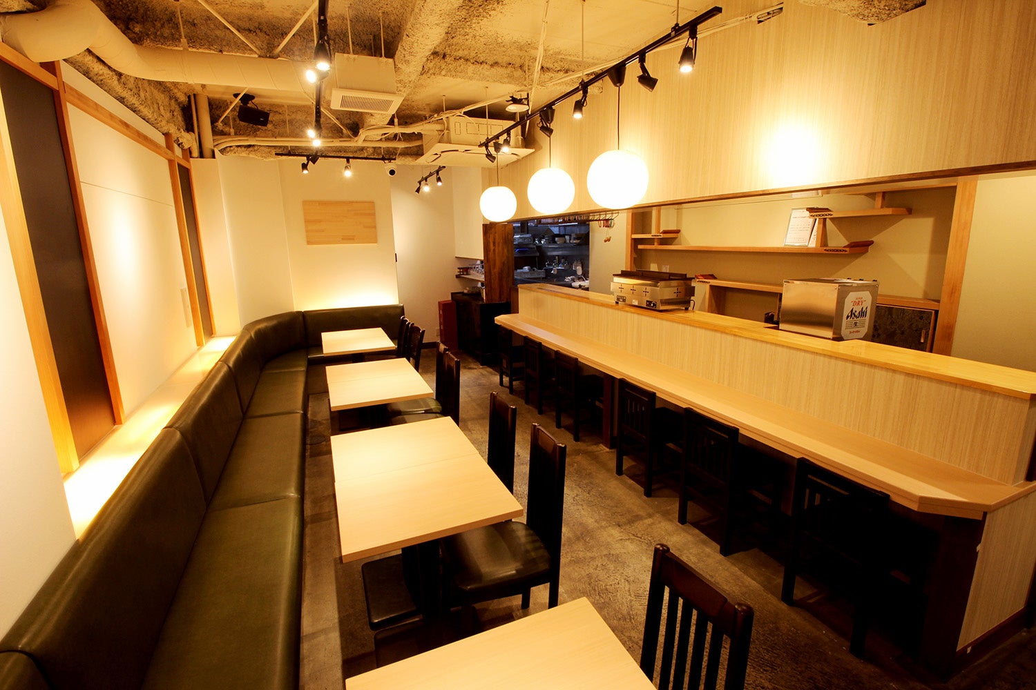 野毛の「モロツヨシ」は、カウンター席とテーブル席からなる全24席。