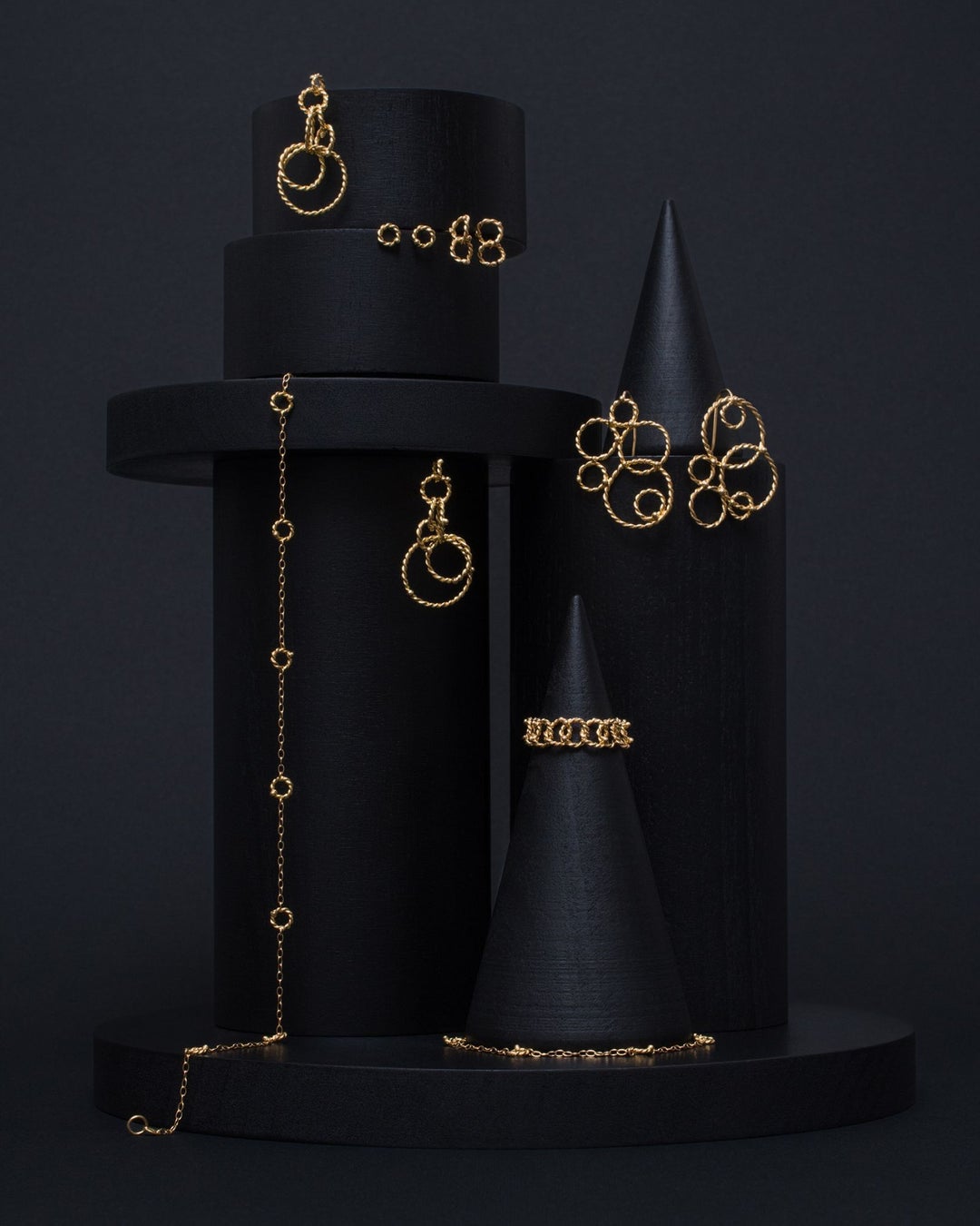 彫刻的なデザインとアートの感性が融合したジュエリーは、洗練された美しさを纏います。個性的でありながら、どんなシーンにも調和し、日常に特別な輝きを与えます。