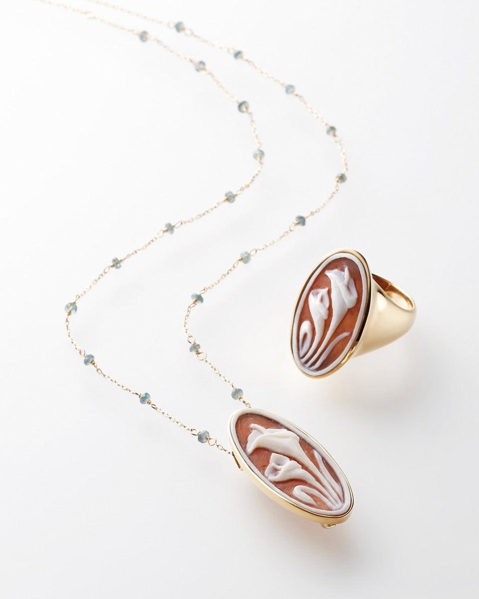 繊細な彫金技術を持つ職人によって、一点一点丁寧に作り上げられたクラフトジュエリー。細部にまでこだわり抜かれたデザインは、匠の技術が生み出す美しさを感じさせます。