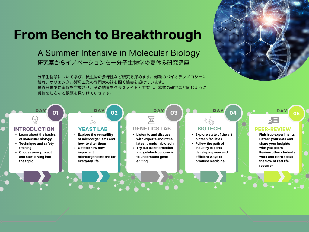 Week 3(5 days): 分子生物学の夏休み研究講座 - 研究室からイノベーションを