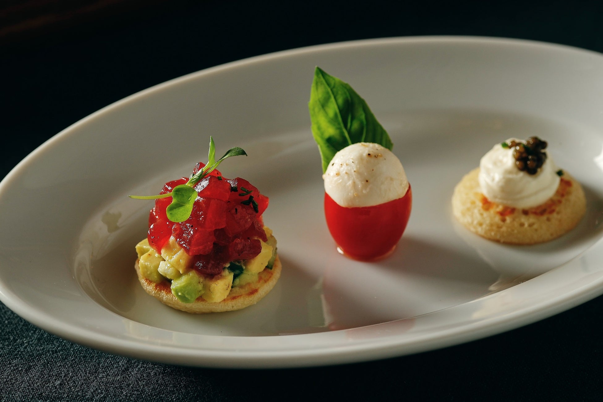 ・アミューズ(マグロのタルタル、キャビアのカナッペ、カプレーゼ)