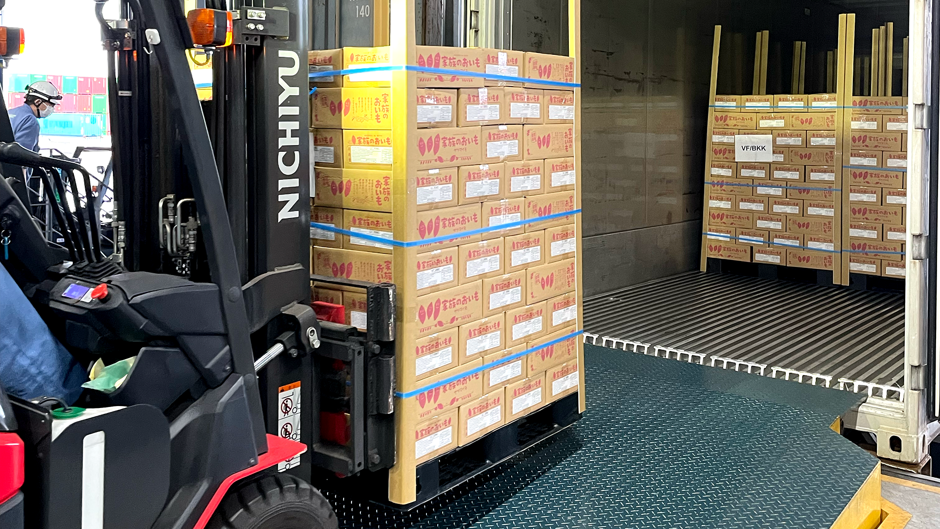 2022年12月5日、株式会社日本農業 (本社:東京都品川区、以下「日本農業」) は、清水港初となるタイ向け静岡県産サツマイモの輸出を行いました。本輸出では約10トンのサツマイモを、日本農業の子会社である、ジャパンベジタブル株式会社 (本社:静岡県牧之原市、以下「ジャパンベジタブル」) が提供し、海上輸送されます。輸出した静岡県産サツマイモは清水港からレムチャバン港へ運搬され、日本農業タイ法人 (社名: Nihon Agri (Thailand) Co., Ltd.) が現地での販売及び、物流実験検証、流通・販売等のマーケティング調査を行います。