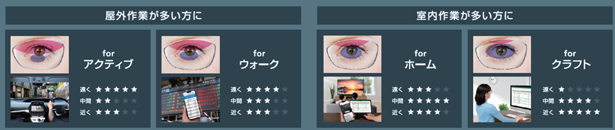 【中近タイプ(forウォーク、forホーム、forクラフト)】:コントラスト向上で遠くのすっきり感を改善