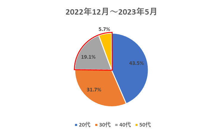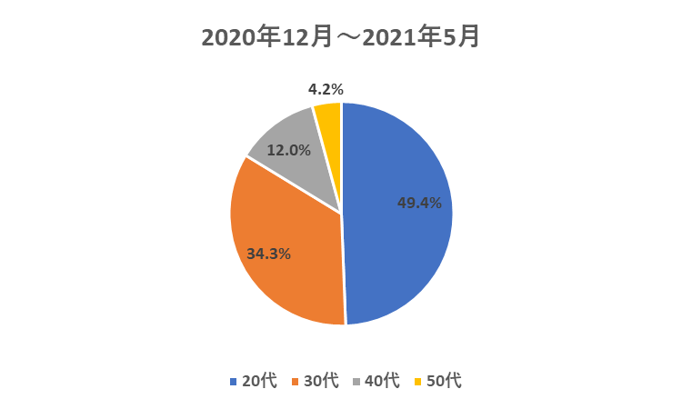ゲイの方々に比べ20代の割合が圧倒的に多くなっているものの全ての年代において入会数は増加しております。これはレズビアンの方場合、ゲイの方に比べ出会いの場やSNS・アプリなどのサービスが極めて少ないことが起因しています。
