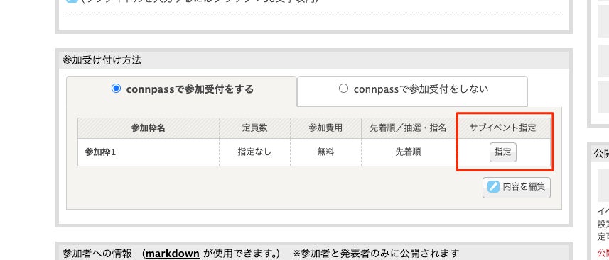 ・ イベント主催者向けヘルプ: https://help.connpass.com/organizers/sub-event-edit