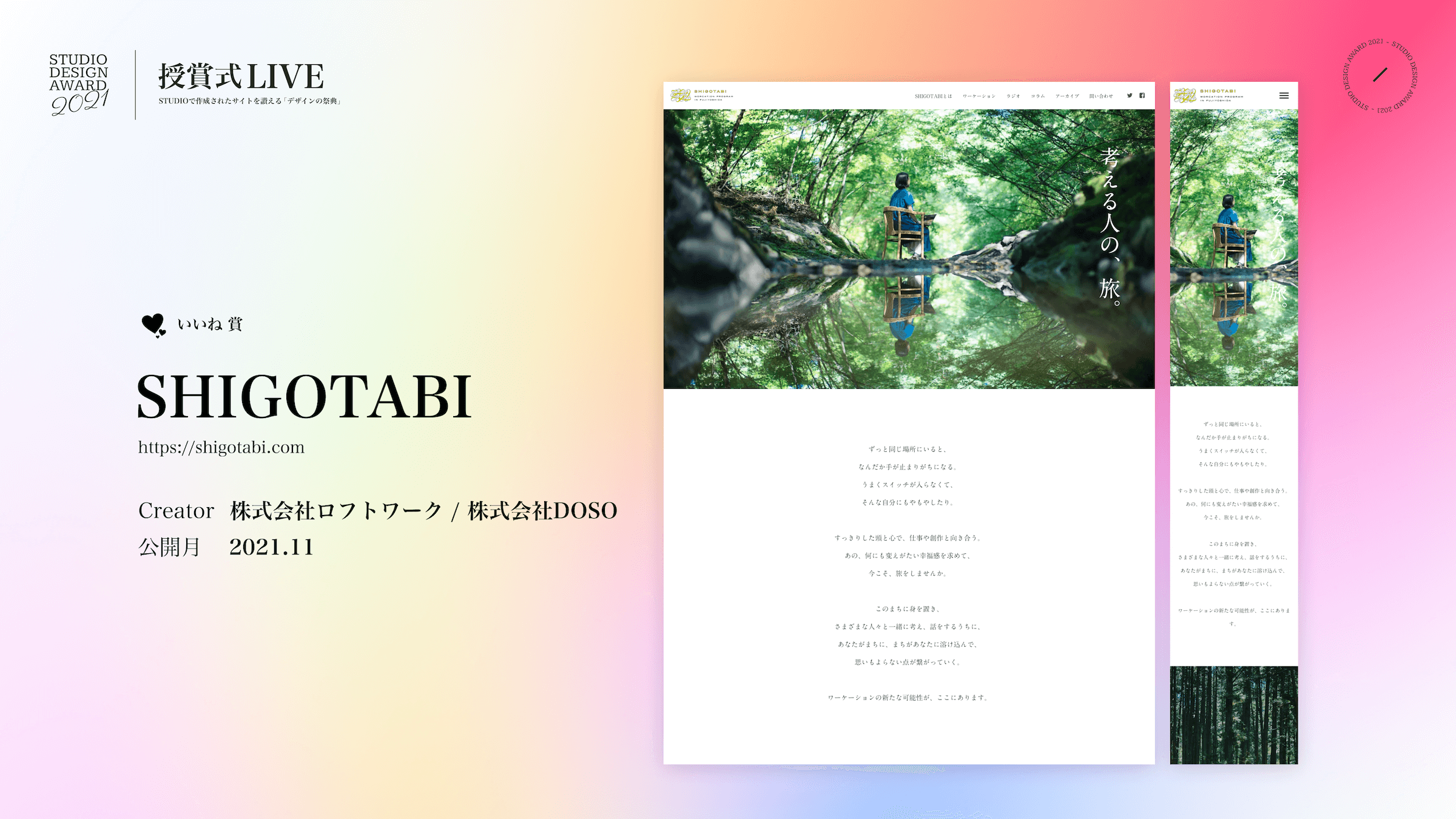 STUDIOで作成されたサイトを讃えるデザインの祭典「STUDIO DESIGN AWARD 2021」、グランプリを含めすべての受賞作を発表。