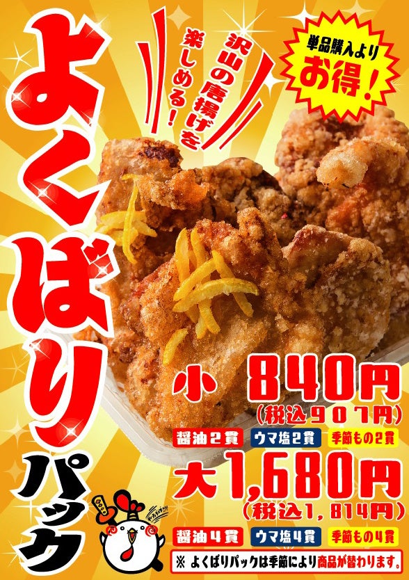 名物 醤油から揚げ、旨塩から揚げ、チキン南蛮等を単品でも弁当でもお楽しみください。食事にもお酒にも相性抜群の塩手羽先も隠れた人気商品です。名古屋黒川店には、イートインスペース26席をご用意しており、定食スタイルで味わって頂けます。格別なまさに『揚げたて』をその場でお楽しみください!!