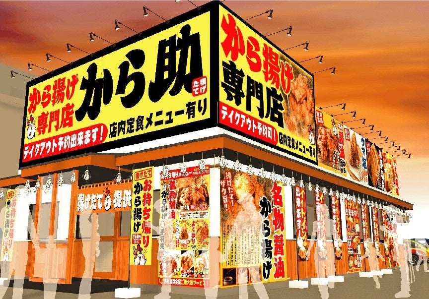 愛知・岐阜・三重で13店舗、毎月の総来店50,000人を超える『から揚げ専門店 から助』の14号店が愛知県名古屋市北区に誕生致します。 『ザク旨』『肉汁ジュワ~』なジャンボ唐揚げを『揚げたて』でご提供いたします。