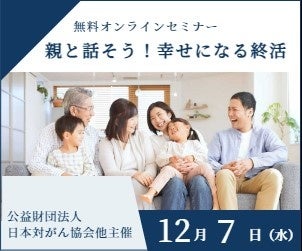 公益財団法人日本対がん協会は、2022年12月7日(水)にオンライン終活セミナー「親と話そう!幸せになる終活」を開催いたします。