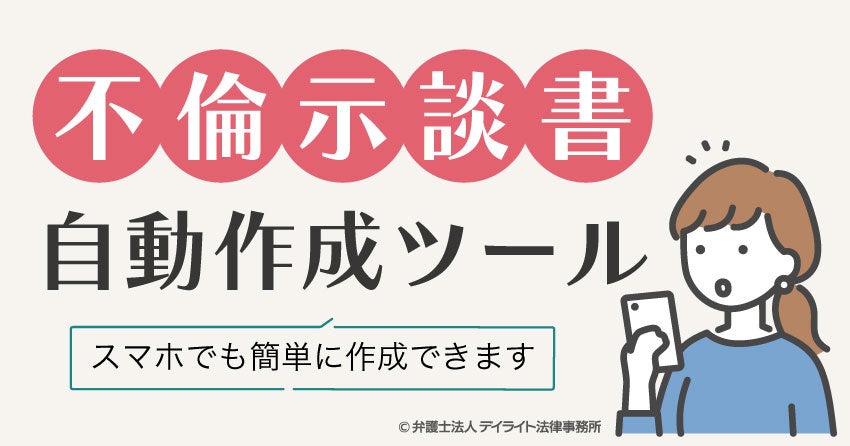離婚分野の問い合わせ件数累計1万件超え(※)の実績を持つ弁護士法人デイライト法律事務所が【弁護士設計】のもと、不倫の示談書を作成する際に活用できるツールをリリースしました。