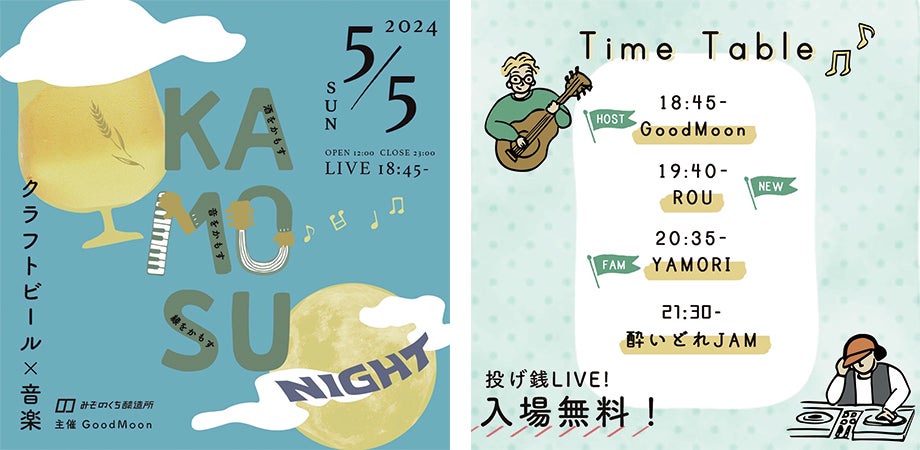 5/5(日・祝) 入場無料の音楽イベント「KAMOSU NIGHT」