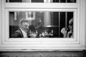 人の温かみを感じることができる一枚。偶然居合わせた隣席との繋がりが、新しい出会いを予感させる。