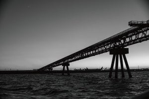 メガネのフレームなど構造体を彷彿とさせる迫力のある一枚。飛行機を導く誘導灯の光が、自分の夢を導いてくれる希望の光のよう。