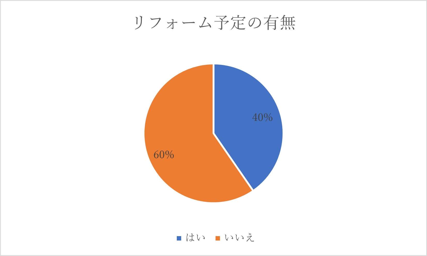 「リフォームを予定している」と回答した方は約4割でした。この回答から、60代にもなると建物の老朽化だけでなく、設備交換の必要性を感じる方が多いことがわかります。