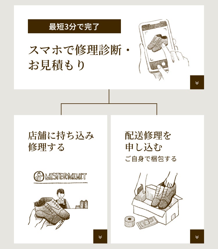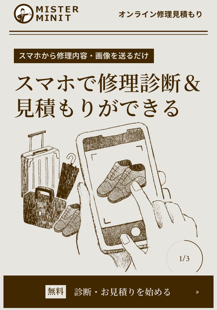 靴修理・バッグ修理・合カギ作製・時計電池交換等のサービスチェーン店「ミスターミニット」を展開するミニット・アジア・パシフィック株式会社(以下、ミスターミニット)は10月31日、オンライン修理見積もりシステムをフルリニューアルし、店舗での修理に加え新たに配送による修理サービスを開始しました。