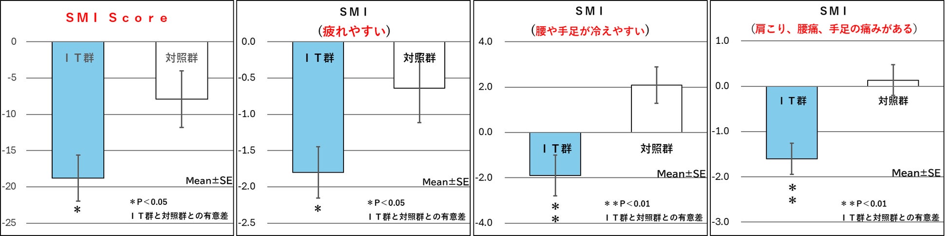 インタートレードヘルスケアでは長年自社ブランドのキノコ(ハナビラタケ)である「ITはなびらたけ」の研究を行ってきましたが、2019年に実施したヒト臨床試験において「ITはなびらたけ」には、中高年期である40代・50代の健常な女性に対して「簡略更年期指数(SMI)」を軽減する機能があり、その中でも「疲れやすさ」を軽減することが判明、大学との共同研究にてその効果を論文発表しております。
