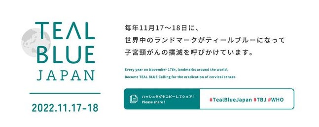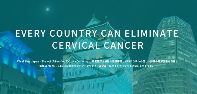 一般社団法人シンクパールは、世界保健機関(WHO)が主催する 「子宮頸がん撲滅世界一斉イルミネーション」と連動し、11月17日、18日に日本のランドマークをライトアップするプロジェクト 『ティールブルージャパン(Teal Blue Japan)キャンペーン』 を実施します。本プロジェクトでは、子宮頸がん検診の受診啓発とHPVワクチンの正しい知識の理解促進を目指します。