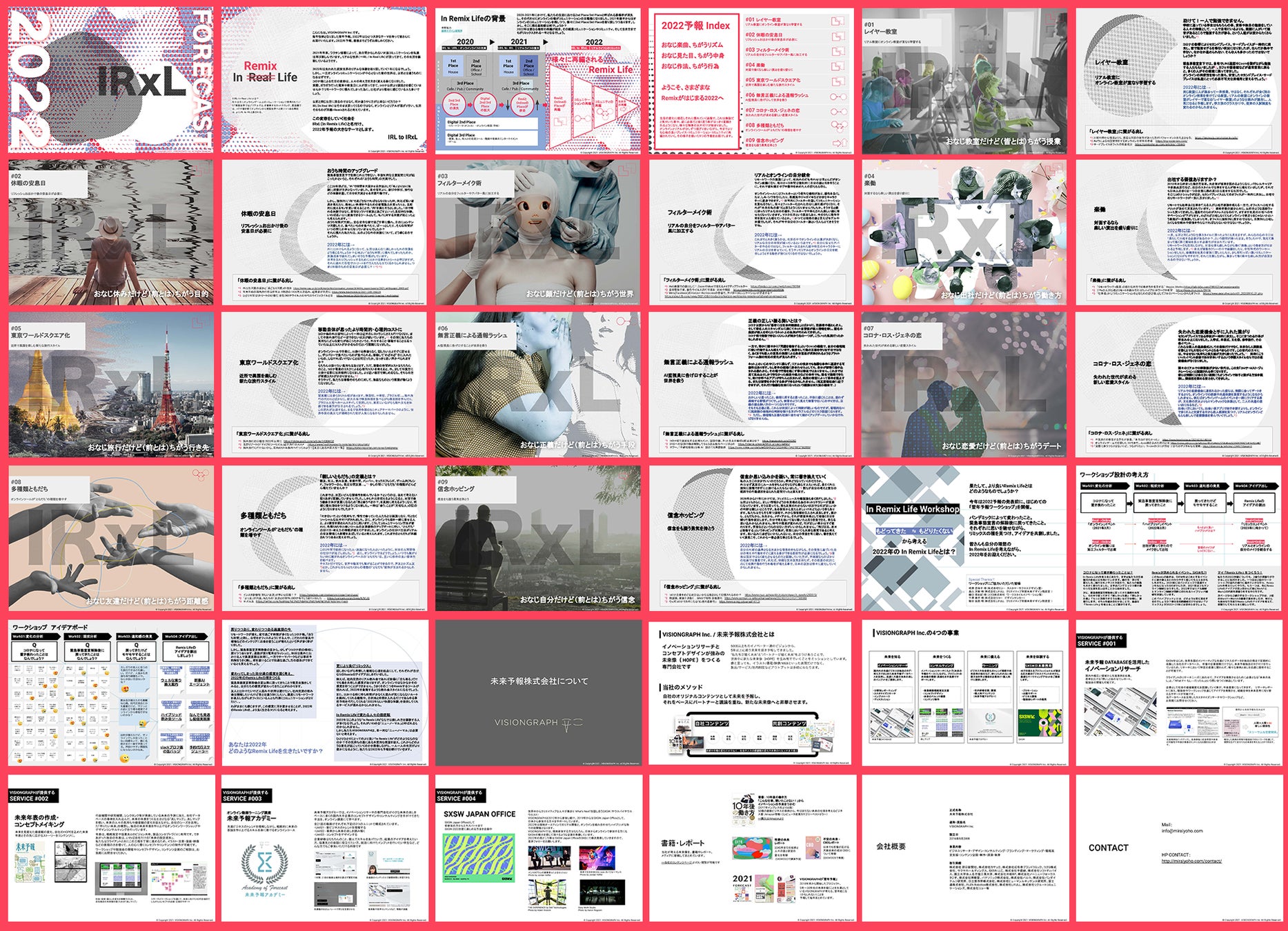 しかし、一旦オンラインコミュニケーションが中心となった後の世界は、以前とは違うものになるはずです。リアルとオンラインが混ざり合う事で、私達の生活はどのように再編されていくのか。「URL to IRL(In Real Life)」の流れを、私達は「IRxL(In Remix Life)」と解釈し、2022年予報の大きなテーマとして9つの予報をお届けします。