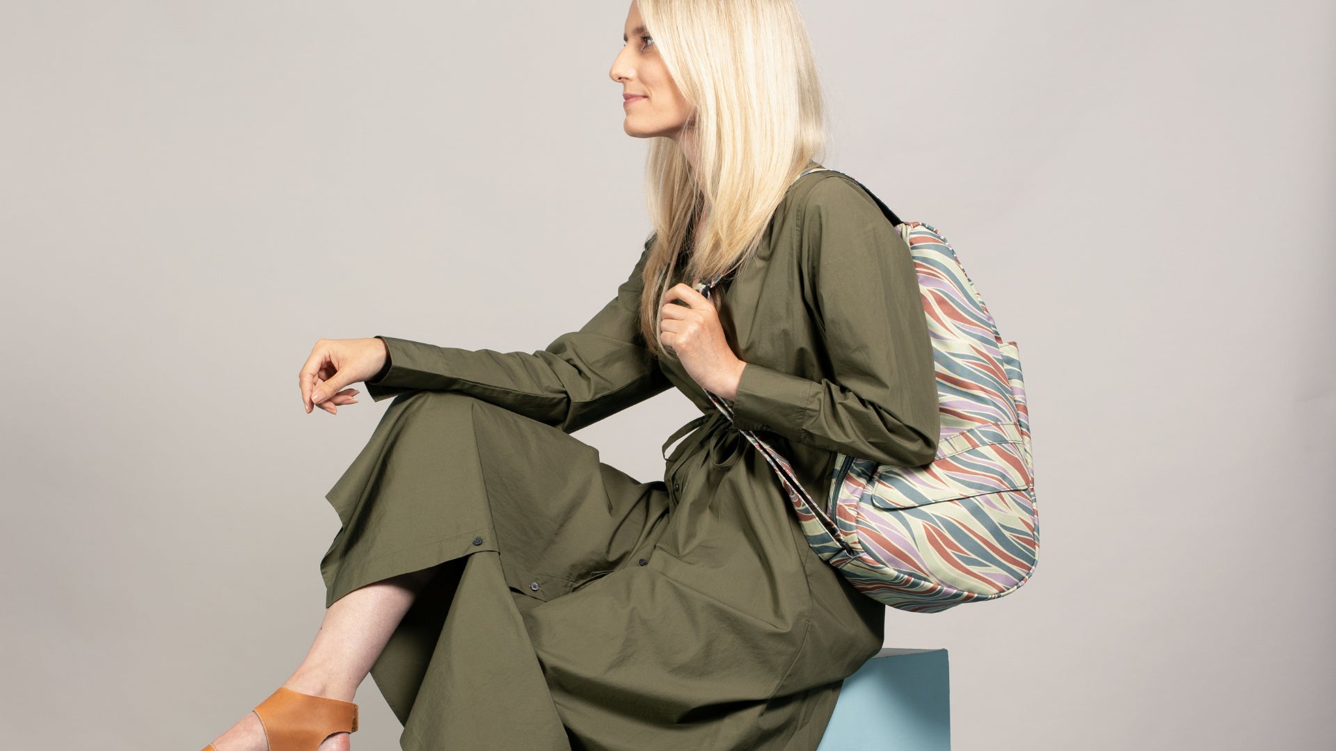 背中に怪我をして、重い荷物が持てなくなってしまった女性のために「バッグ職人、医師、カイロプラクター」が開発。独自のしずく型が背中にフィットし、肩に集中する重さを分散することで荷物が軽く感じ、疲れにくいことが特徴です。収納力にも優れ、両手もあくため身軽に行動したい旅行にも最適!