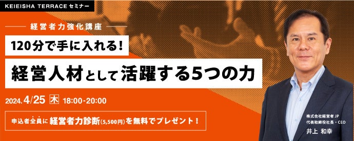 【経営者力強化講座~120分で手に入れる!経営人材として活躍する5つの力】4月25日(木)18:00~開催
