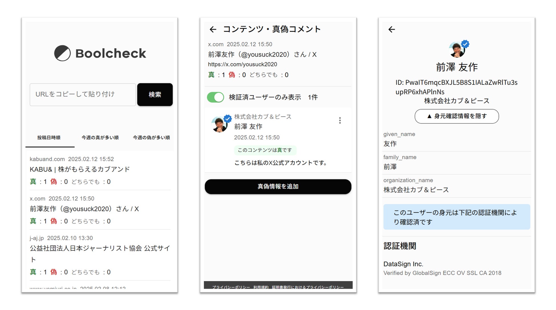 前澤友作氏も実証に参加、偽・誤情報対策のための真偽表明プラットフォーム「Boolcheck」を発表