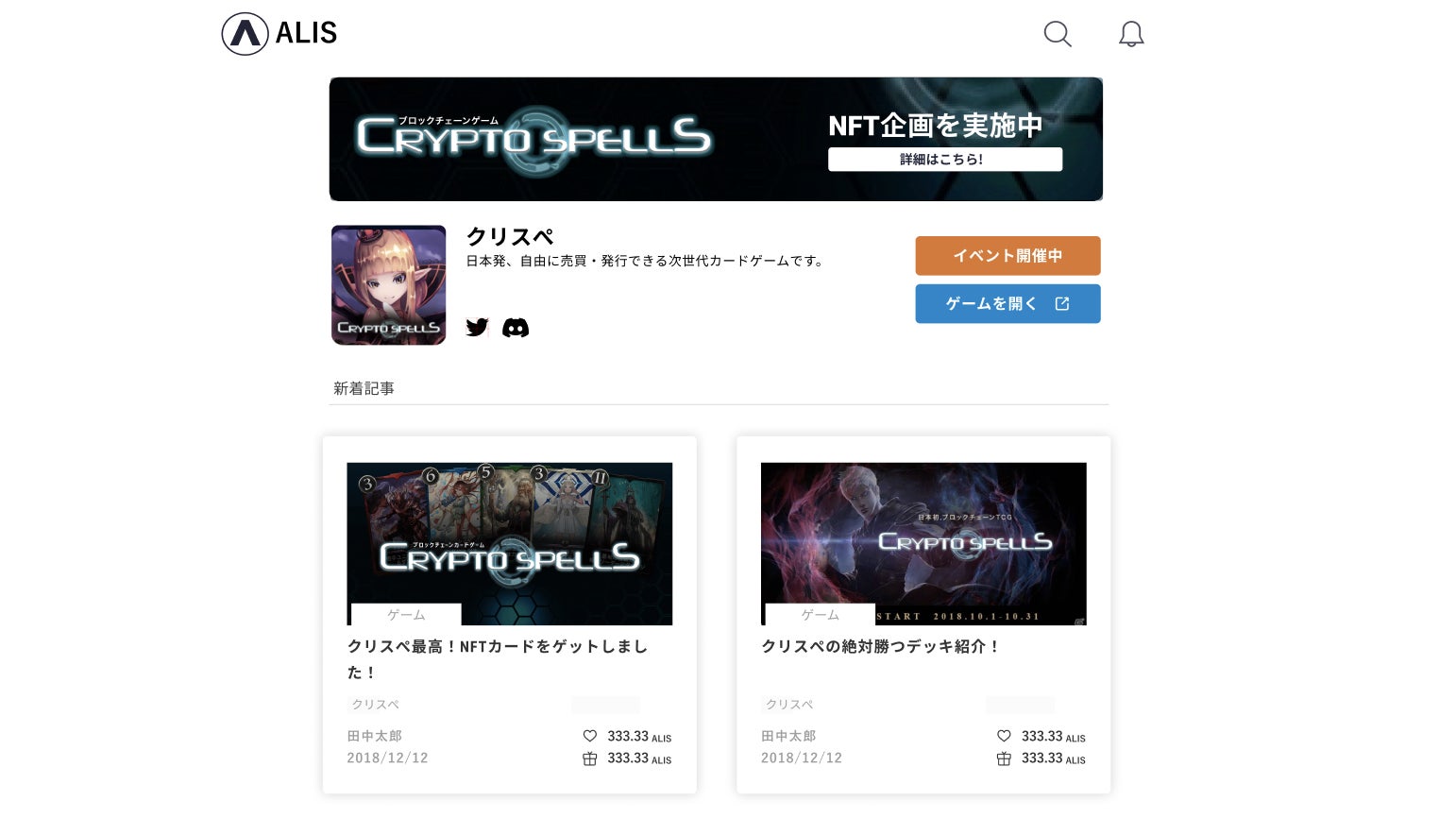 大人気NFTゲーム「クリプトスペルズ(クリスペ)」とALISのコラボイベントが復活。ALISで記事を書くだけで参加OK!大人気NFTゲームの200枚限定カードをゲットしよう