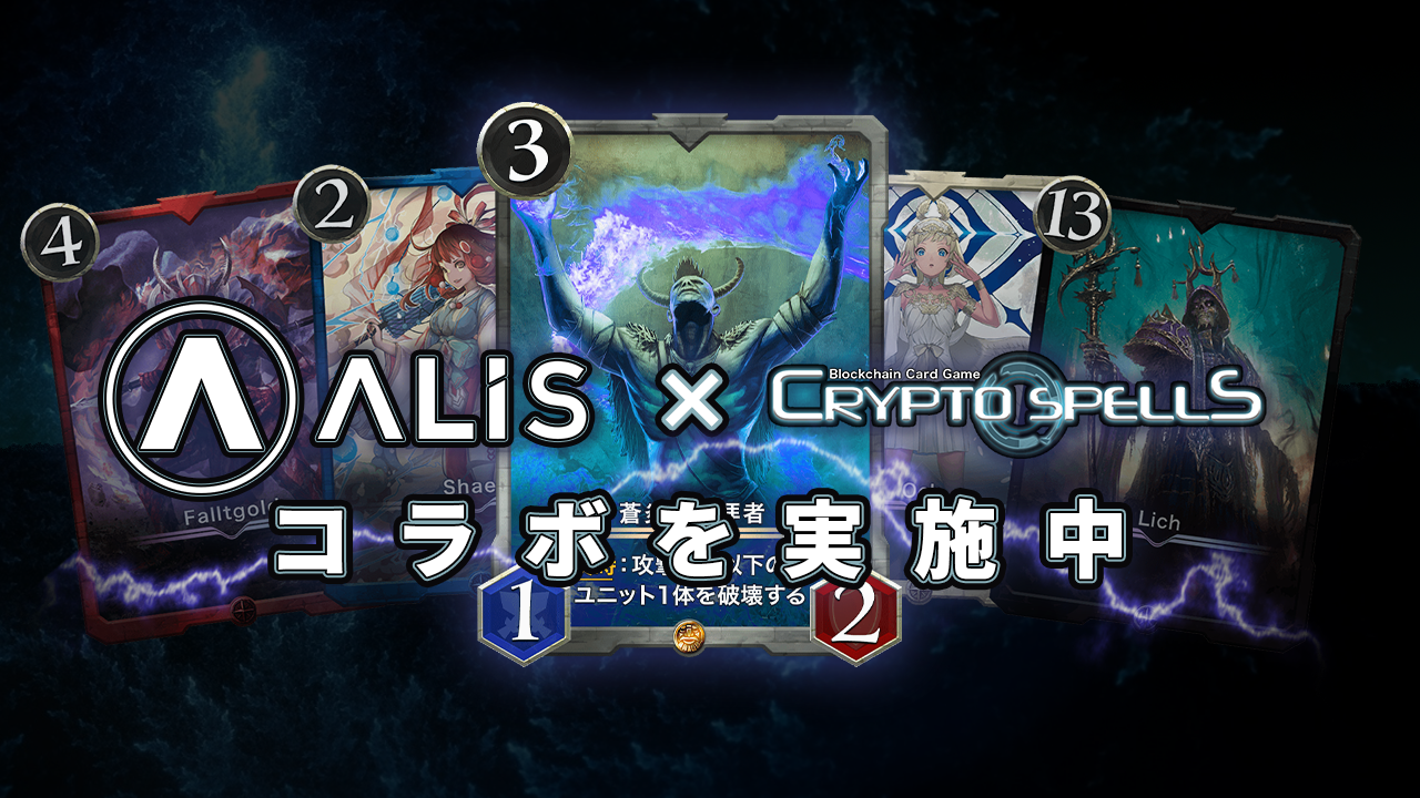 ブロックチェーンソーシャルメディア「ALIS」の運営を行う株式会社ALIS(本社:東京都港区、代表取締役:石井壮太、水澤貴)と、大人気NFTゲーム「クリプトスペルズ(クリスペ)」を提供するCryptoGames株式会社(本社:東京都渋谷区、代表取締役:小澤 孝太)は2022年3月28日からクリプトスペルズ限定NFTカードがもらえるコラボイベントを開始します。