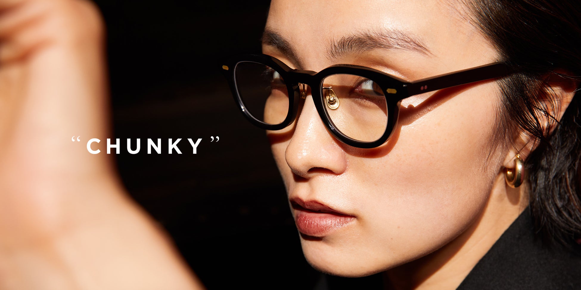 厚さ6mmのアセテート生地を使用した肉厚なボリュームが魅力の新作アイウェアは、 “がっちりした・厚ぼったい”を意味する“Chunky(チャンキー)”。