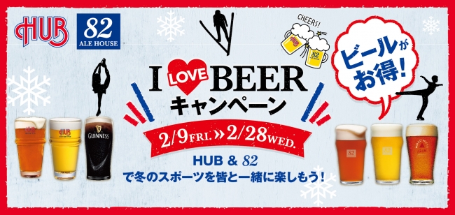 ビール好きはHUB・82に集まれ! 早い時間はビールがお得「I LOVE BEER キャンペーン」2月28日まで