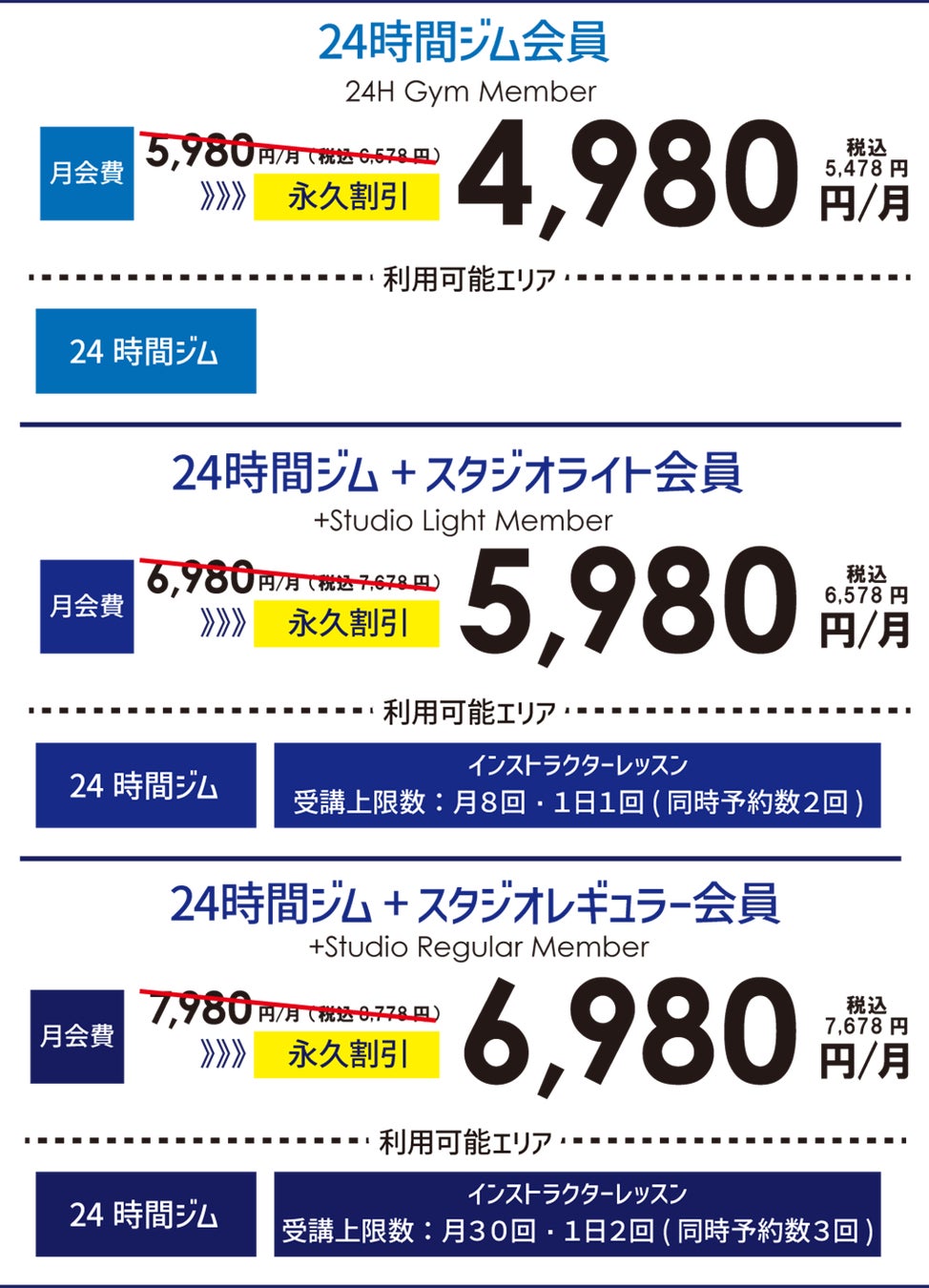 フィットネスをより身近に感じていただくためのバリュープライスです。