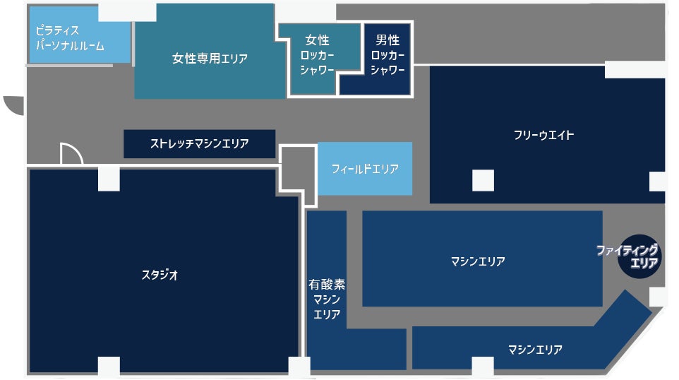 パーソナルジムを併設した当店舗は全スタッフがプロのパーソナルトレーナーであるため、あらゆる顧客ニーズに応えることができるだけでなく、最新型の空間演出・衝撃的なバリュープライス・安心のセキュリティ設備を備えるフィットネス施設となっております。