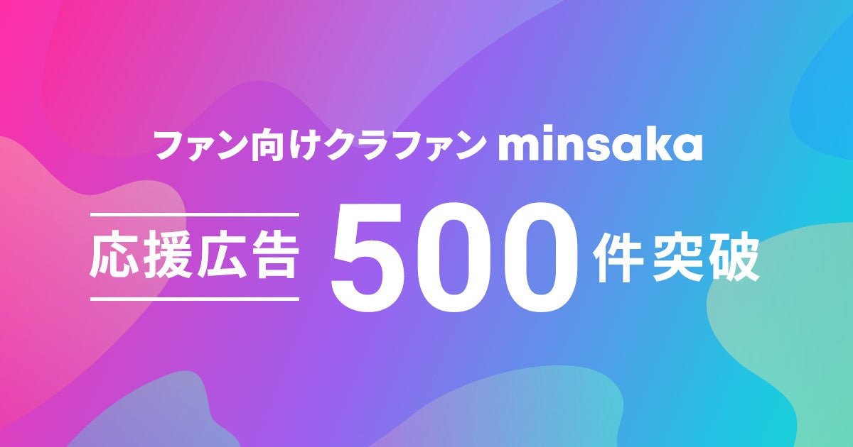 ファン向けクラウドファンディングminsaka(運営:株式会社Sakaseru/本社:愛知県名古屋市)は、応援広告企画数500件を突破しました。