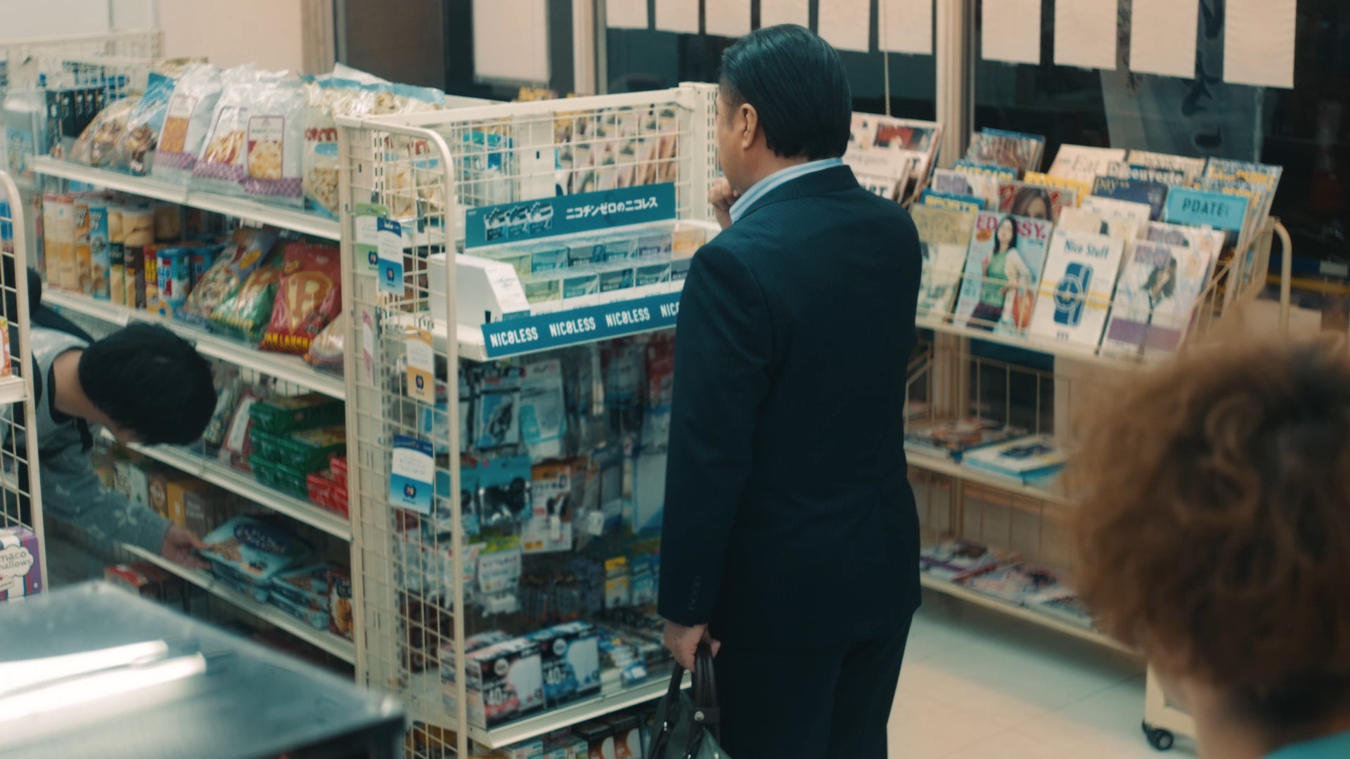 自分の健康やお小遣いの節約、家計の負担の削減など、様々な理由でNICOLESSの購入を検討する小手さん。しかし、また挫折することを考えると購入に踏み切れない。見かねたコンビニ店員から「続けばラッキーってくらいでよくないですか」と、背中を押す一言が。小手さんもその一言を待ってたかのように「だよね~!」と賛同。NICOLESSを購入し、テンション高くコンビニをあとにする小手さんのコミカルな動きにも注目です。